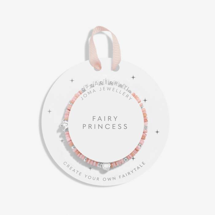 Our adorable Happy Little Moments collection is now available for little wrists... Say hello to the Kids' Happy Little Moments collection! Featuring the same beaded designs and threaded with multicoloured natural shells, alphabet beads, twinkling charms and coastal motifs, these stackable styles are perfect for celebrating special moments with little ones in the cutest way. With its circular starburst-print presentation card and blush pink hanging ribbon, this Kids' Happy Little Moments 'Fairy Princess' bracelet in silver plating radiates the happiest vibes!