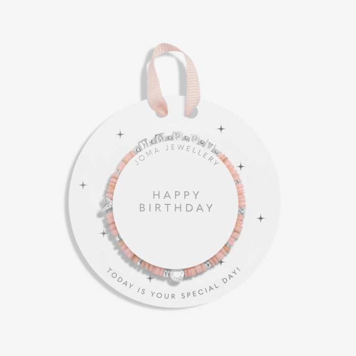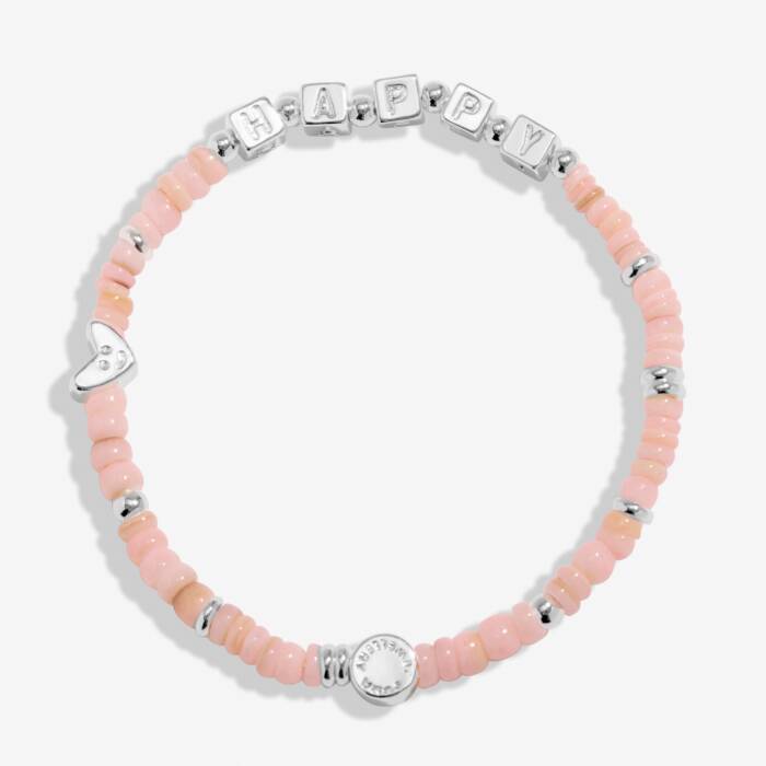 Our adorable Happy Little Moments collection is now available for little wrists... Say hello to the Kids' Happy Little Moments collection! Featuring the same beaded designs and threaded with multicoloured natural shells, alphabet beads, twinkling charms and coastal motifs, these stackable styles are perfect for celebrating special moments with little ones in the cutest way. With its circular starburst-print presentation card and blush pink hanging ribbon, this Kids' Happy Little Moments 'Happy Birthday' bracelet in silver plating radiates the happiest vibes!