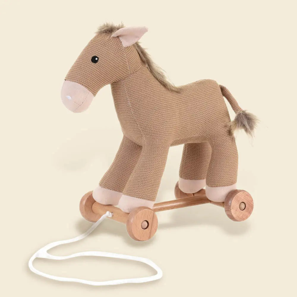 A great friend to take with you wherever you go, the little pull-along horse Henry in knitted cotton. 1 year+